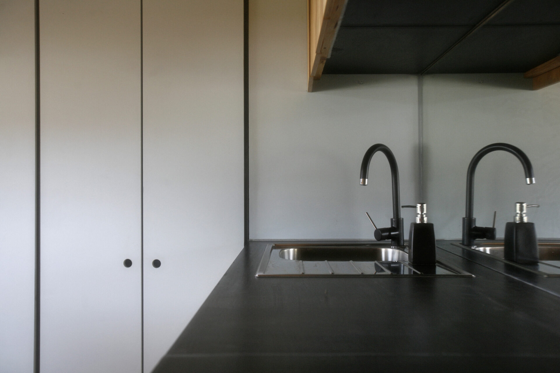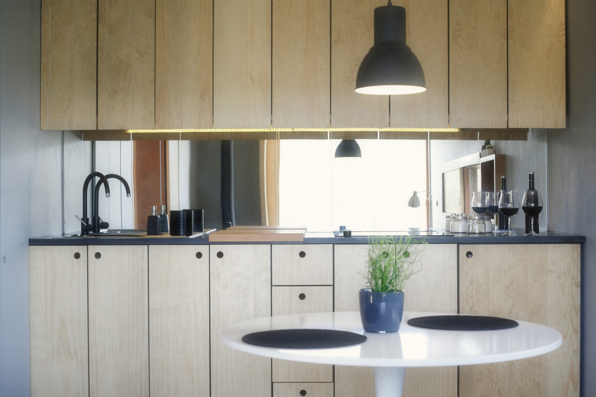 A cozinha está totalmente equipada para os hóspedes prepararem as próprias refeições. Existe um mesa mesa para refeições e cadeiras que proporcionam o ambiente para uma refeição com vistas para a vegetação circundante.